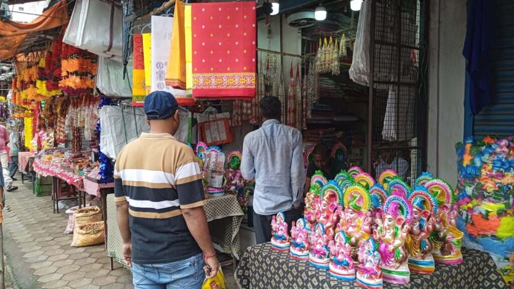 राउरकेला:25//8,(कलिंगा समाचार)इस्पात शहर में गणेश पूजा को लेकर बाजार समेत पूजा सामग्री दुकान सजावट सामग्री दुकान फल दुकान मीठा दुकान समेत मूर्ति दुकान में लोगों की भीड़ देखने को मिल रही है वही खासकर आगामी 27 तारीख को बुधवार के दिन गणेश पूजा है जिसे लेकर राउरकेला शहर के डेली मार्केट ट्रैफिक मार्केट बसंती कॉलोनी मार्केट पनपोष मार्केट इस्पात मार्केट आम बागान मार्केट देवगांव मार्केट वेदव्यास मार्केट में लोगों की भीड़ देखी जा रही है गणेश पूजा को लेकर लोग सजावट सामग्री समेत रंगीन लाइट व मूर्ति की खरीदारी कर रहे हैं वही गणेश पूजा स्कूल कॉलेज सामाजिक संगठन क्लब समेत धार्मिक संगठन में की जाती है जिसे लेकर लोग खरीदारी कर रहे हैं वहीं बाजार में भी लोगों की भीड़ देखने को मिल रही है वहीं दूसरी ओर इस बार सजावट दुकान समेत रंगीन लाइटों की डिमांड ज्यादा है वहीं दूसरी और दुकानदार भी इस बार पूजा को लेकर ग्राहकों की पसंद को ध्यान में रखते हुए किसी भी प्रकार की त्रुटि दुकान में नहीं रख रहे हैं वहीं दूसरी और इस बार शहर में छोटी मूर्ति से ज्यादा बड़ी मूर्ति की मांग ज्यादा है खासकर राउरकेला शहर के सिविल टाउनशिप पूजा कमेटी बसंती कॉलोनी पूजा कमेटी छेड़ पूजा कमेटी पावर हाउस ट्रक पार्किंग के सामने गणेश पूजा कमेटी एसटीआई गणेश पूजा कमेटी बसंती कॉलोनी दव खोसला स्कूल के सामने गणेश पूजा कमेटी रेलवे कॉलोनी समेत सेक्टर आंचल में गणेश पूजा को लेकर मेला समेत मीना बाजार कुछ कमेटी के द्वारा लगाए जा रहे हैं वहीं मूर्तिकार मूर्ति को अंतिम रूप देने के लिए लगे हुए हैं वहीं इस बार सिविल टाउनशिप समेत बसंती कॉलोनी में बड़े-बड़े पंडाल का निर्माण करने के साथ-साथ पश्चिम बंगाल से कारीगरों को बुलाया गया है वहीं सिविल टाउनशिप में एक गणेश पूजा कमेटी के द्वारा खाटू श्याम तोरण द्वार बनाने के साथ-साथ दूसरे गणेश पूजा कमेटी के द्वारा बनारस घाट का विशाल रूप के रूप में पंडाल निर्माण किया जा रहा है वही भव्य मूर्ति का निर्माण किया जा रहा है इसी प्रकार बसंती कॉलोनी पूजा कमेटी के द्वारा अभी भव्य मूर्ति समेत पंडाल का भव्य निर्माण किया जा रहा है वही आज राउरकेला शहर में गणेश पूजा को लेकर बाजारों में लोगों के द्वारा खरीदारी जोरों पर की जा रही थी खासकर फल दुकान मीठा दुकान पूजा सामग्री दुकान कपड़ा दुकान में लोगों की काफी भीड़ देखने को मिली वही पूजा को लेकर ट्रैफिक पुलिस के द्वारा चौक चौराहा पर जवानों को ट्रैफिक नियंत्रण के लिए तैनात किया गया है