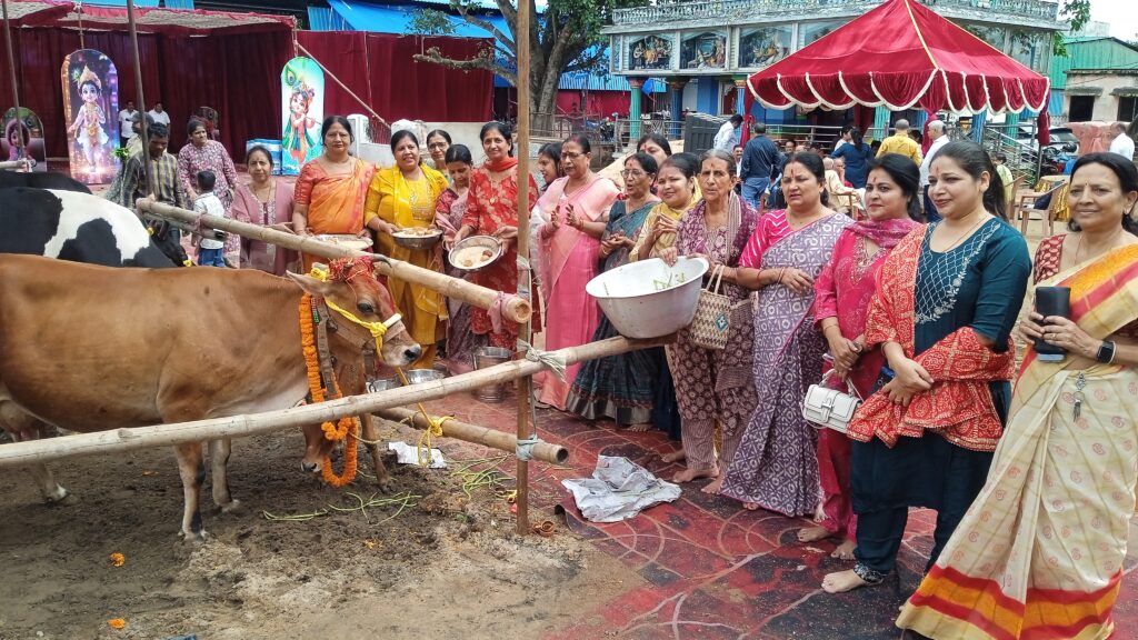 राउरकेला:29//10,(कलिंग समाचार)सुंदरगढ़ जिले के वेदव्यास गौशाला समिति की ओर से बुधवार के दिन गोपाष्टमी मेले का भव्य आयोजन किया गया इस मौके पर सुंदरगढ़ जिला समेत राउरकेला राजगंगपुर बीरमित्रपुर बिसरा समेत सेक्टर से गो भक्त मेले में शामिल हुए वही गौ माता की सेवा करने के साथ गुड चोकर हरी सब्जी खली पुआल समेत अन्य को खाद्य सामग्री गौ माता को खिलाई गई इस गोपाष्टमी मेले में महिलाएं गौ माता की पूजा अर्चना करने के साथ लाल कपड़ा समेत रोली मोली एवं तिलक लगाकर गौ माता की पूजा अर्चना की वहीं राउरकेला शहर के विभिन्न मारवाड़ी महिला संगठनों के द्वारा गौ माता की सेवा चना की गई वहीं गौशाला में भजन संध्या का भी आयोजन किया गया झारखंड टाटानगर समेत स्थानीय भजन गायकारों के द्वारा एक से बढ़कर एक भजन सुनाए गए वही मध्यान 12:30 से अल्प आहार समेत प्रसाद सेवन एवं भंडारे का आयोजन गौशाला कमेटी की ओर से किया गया इस मौके पर वेदव्यास गौशाला समिति के अध्यक्ष अशोक अग्रवाल रसूएवाला उपाध्यक्ष हरिओम बंसल सचिन प्रतीक कयाल कोषाध्यक्ष कैलाश मारोठिया सदस्यों में सुभाष बापोडिया नरेश अग्रवाल रोहित अग्रवाल विनय पांडे समेत राउरकेला शहर के अशोक अग्रवाल रूमको देवेंद्र गुप्ता मूलचंद बालोदिया विनोद बाल्टी वाला पवन अग्रवाल प्रकाश मित्तल राउरकेला जागृति महिला संगठन की अध्यक्ष अनामिका मित्तल सचिव प्रभा अग्रवाल समेत अन्य महिला संगठन के पदाधिकारी समेत राउरकेला शहर के मान्यगण लोग गोपाष्टमी मेले में शामिल हुए आज वेदव्यास गौशाला परिसर में गो भक्तों की काफी भीड़ देखने को मिली