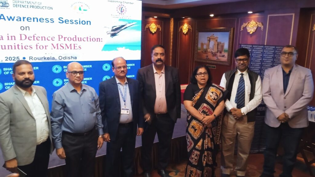 राउरकेला:11//11,(कलिंग समाचार) देश में रक्षा उपकरणों के स्वदेशी उत्पादन और आत्मनिर्भर भारत के लक्ष्य को साकार करने के उद्देश्य से आज राउरकेला के होटल मेफेयर में भारत चैंबर ऑफ कॉमर्स द्वारा एक जागरूकता कार्यक्रम व संगोष्ठी आयोजित किया गया। यह कार्यक्रम राउरकेला चैंबर ऑफ कॉमर्स एंड इंडस्ट्री(आर सी सी आई) के सहयोग से इसकी मेजबानी में आयोजित हुआ, जिसमें रक्षा क्षेत्र में एमएसएमई (सूक्ष्म, लघु और मध्यम उद्योगों) की संभावनाओं पर विशेष चर्चा की गई।कार्यक्रम का उद्घाटन राउरकेला चैंबर ऑफ कॉमर्स एंड इंडस्ट्री के अध्यक्ष मलय मंडल ने स्वागत भाषण के साथ किया। उन्होंने कहा कि राउरकेला में मौजूद उद्योगों में इतनी क्षमता है कि वे रक्षा सामग्रियों के उत्पादन में योगदान दे सकते हैं। भारत में एमएसएमई क्षेत्र में 27,886 करोड़ रुपये का पूंजी निवेश होने के बावजूद राउरकेला इसका पूरा लाभ नहीं उठा पा रहा है। इसीलिए, इस कार्यक्रम का मुख्य उद्देश्य यह है कि किस प्रकार एमएसएमई इकाइयाँ रक्षा उपकरण निर्माण में योगदान देकर इस क्षेत्र में आत्मनिर्भरता ला सकती हैं।उन्होंने कहा कि राउरकेला इस्पात संयंत्र का स्टील जब देश के युद्धपोतों के निर्माण में प्रयोग हो सकता है, तो राउरकेला के छोटे-बड़े उद्योग रक्षा उपकरण क्यों नहीं बना सकते। इसके लिए नीति स्तर पर कदम उठाए जाने की आवश्यकता है।इस कार्यक्रम में भारत सरकार के रक्षा उत्पादन मंत्रालय के उपनिदेशक आनंद कुमार सिंह, म्यूनिशंस इंडिया लिमिटेड (बड़माल ऑर्डनेंस फैक्ट्री, बलांगीर) के अतिरिक्त महाप्रबंधक राम कुमार, एयरोस्पेस एंड डिफेंस अर्नेस्ट एंड यंग एलएलपी, पश्चिम बंगाल के प्रबंधक बलप्रीत सिंह, और एमएसएमई विकास संस्थान, भारत सरकार के संयुक्त निदेशक एस. के. साहू ने भाग लिया।वक्ताओं ने बताया कि राउरकेला के औद्योगिक ढांचे को रक्षा उपकरण उत्पादन के अनुकूल बनाने के लिए परीक्षण सुविधाओं और तकनीकी समर्थन की आवश्यकता है। उन्होंने सुझाव दिया कि भविष्य में इस दिशा में ठोस योजना बनाकर एमएसएमई क्षेत्र में निवेश बढ़ाया जाना चाहिए, ताकि राउरकेला देश के रक्षा उत्पादन मानचित्र पर एक महत्वपूर्ण केंद्र के रूप में स्थापित हो सके।कार्यक्रम का संचालन रुद्राणी मित्रा ने किया।