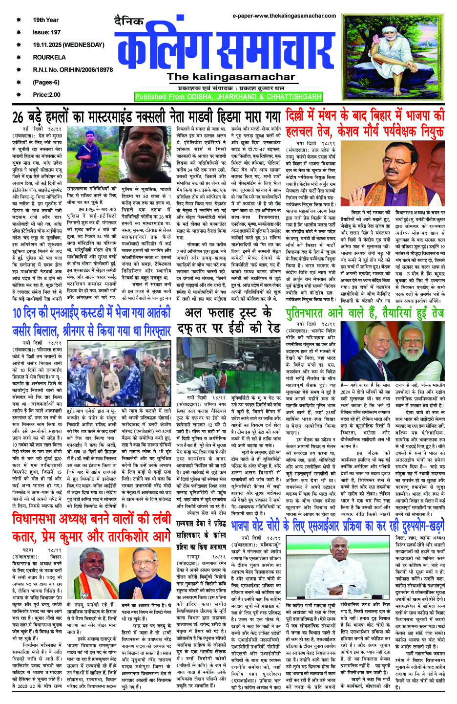 E-Paper 19-11-2025 kalingasamachar@gmail.com November 20, 2025 Spread the love 1_compressedDownload About the Author kalingasamachar@gmail.com Administrator Visit Website View All Posts Post Views: 16 Continue Reading Previous: 07 दिसंबर को राउरकेला फ्रैंडशिप कप-2025 का आयोजनNext: बिजु पटनायक प्रौद्योगिकी विश्वविद्यालय का दो दिवसीय अनुसंधान सम्मेलन-2025 Leave a Reply Cancel replyYour email address will not be published. Required fields are marked *Comment * Name * Email * Website Save my name, email, and website in this browser for the next time I comment. Related News E-Paper 6-2-2026 The Kalinga Samachar February 6, 2026 E-Paper 4-2-2026 The Kalinga Samachar February 5, 2026 E-Paper 28-1-2026 The Kalinga Samachar January 29, 2026