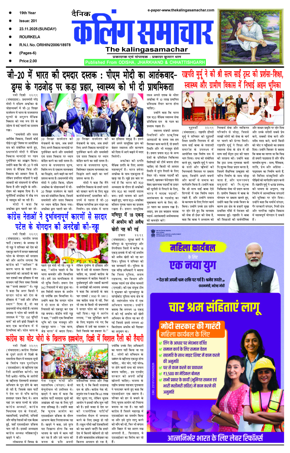 E-Paper 23-11-2025 kalingasamachar@gmail.com November 24, 2025 Spread the love 1_compressedDownload About the Author kalingasamachar@gmail.com Administrator Visit Website View All Posts Post Views: 18 Continue Reading Previous: रोटरी और इनरव्हील क्लब रिवरसाइड का स्वदेशी वॉकथॉनNext: ओराम समाज की प्रशिक्षण कार्यशाला का समापन समारोह आयोजित। Leave a Reply Cancel replyYour email address will not be published. Required fields are marked *Comment * Name * Email * Website Save my name, email, and website in this browser for the next time I comment. Related News E-Paper 6-2-2026 The Kalinga Samachar February 6, 2026 E-Paper 4-2-2026 The Kalinga Samachar February 5, 2026 E-Paper 28-1-2026 The Kalinga Samachar January 29, 2026