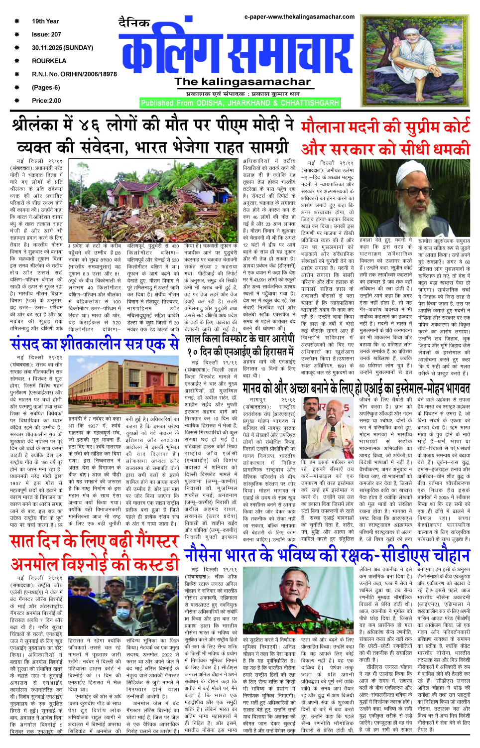 E-Paper 30-11-20256 kalingasamachar@gmail.com December 1, 2025 Spread the love 1_compressedDownload About the Author kalingasamachar@gmail.com Administrator Visit Website View All Posts Post Views: 19 Continue Reading Previous: वरिष्ठ नागरिक संघ का 2024 – 25 का वार्षिक अधिवेषणNext: श्री श्री विश्वशांति महायज्ञ संपन्न Leave a Reply Cancel replyYour email address will not be published. Required fields are marked *Comment * Name * Email * Website Save my name, email, and website in this browser for the next time I comment. Related News E-Paper 6-2-2026 The Kalinga Samachar February 6, 2026 E-Paper 4-2-2026 The Kalinga Samachar February 5, 2026 E-Paper 28-1-2026 The Kalinga Samachar January 29, 2026
