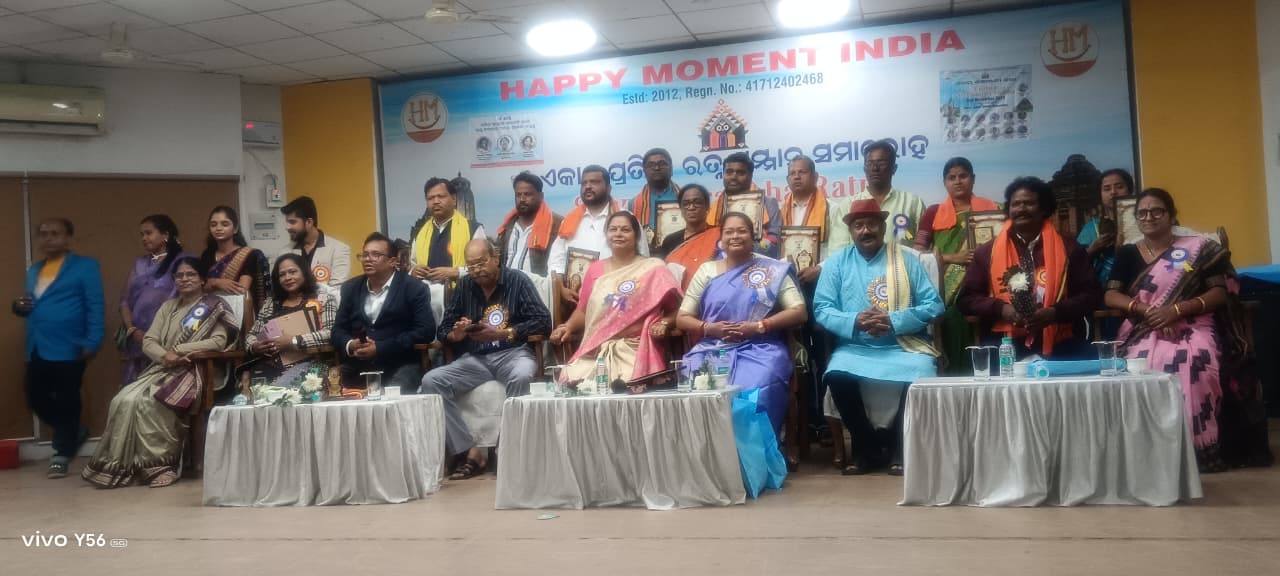 राउरकेला:3//12,(कलिंग समाचार) सामाजिक संस्था हैप्पी मोमेंट्स ऑफ इंडिया की ओर से एकाग्र प्रतिभा रत्न सम्मान समारोह भुवनेश्वर के गीतगोविंद हॉल में आयोजित किया गया। संस्था के अध्यक्ष राजेंद्र प्रसाद पांडा के आह्वान और समन्वय में आयोजित इस समारोह की अध्यक्षता वरिष्ठ पत्रकार और कवि कुंजबिहारी राउत ने की, जबकि पद्मश्री देवीप्रसन्न पटनायक मुख्य अतिथि, पद्मश्री श्यामामणि देवी विशेष अतिथि, भुवनेश्वर मध्य विधायक अनंत नारायण जेना, उत्कल मेल के संपादक डॉ. पीतांबर मिश्र, छत्तीसगढ़ के भाषाविद् डॉ. मीनकेतन दाश, पूर्व प्रशासनिक अधिकारी लोकनाथ मिश्र, प्रशासनिक अधिकारी काननबाला नायक और संध्यावती प्रधान, समाजसेवी बंशीधर जगदेव सहित अन्य गणमान्य व्यक्ति सम्मानित अतिथि के रूप में शामिल हुए।अध्यक्ष श्री राउत ने अध्यक्षीय भाषण दिया और कार्यक्रम के उद्देश्य पर बात की। इस अवसर पर, संस्था से जुड़े दिवंगत शंकर परिड़ा, पंडित नीलकंठ राउत और गायक ह्यूमन सागर के निधन पर और उनकी आत्मा की सद्गति की कामना करते हुए एक मिनट का मौन रखा गया। उपस्थित सभी अतिथियों ने संस्था की समाज के प्रति प्रतिबद्धता, खुशी बांटने, पर्यावरण और सामाजिक जिम्मेदारी के बारे में बात की और श्री पांडा के कार्यक्रम की प्रशंसा की।इस अवसर पर, सुदीप साहू, जयश्री धल ने ह्यूमन सागर के गाए गाने गाकर उन्हें श्रद्धांजलि अर्पित की। अन्य वक्ताओं में उत्तरी अमेरिका के संजय दलेई, हैदराबाद से आए राजा सुधाकर राचपुड़ी और चेरकु विजयलक्ष्मी, मंजुला त्रिपाठी, सुरेंद्र मुदुली शामिल थे।इस अवसर पर शिक्षा, साहित्य, समाज सेवा, खेल, संगीत, कला और संस्कृति जैसे विभिन्न क्षेत्रों में उत्कृष्ट प्रदर्शन करने वाले विशिष्ट व्यक्तियों को सम्मानित किया गया। इसी तरह, रायगढ़ा से आए शिक्षक प्रदीप चौधरी की पुस्तक ‘अनुसंधान’ का विमोचन अतिथियों ने किया। कार्यक्रम के संचालन में आरजू बीबी, सबिता मोहंती, रानी गांगुली और बेबिना पटनायक ने सहयोग किया, जबकि अंत में पुरी जीएसटी के संयुक्त आयुक्त डॉ. पद्मलोचन राउत ने धन्यवाद ज्ञापन किया।