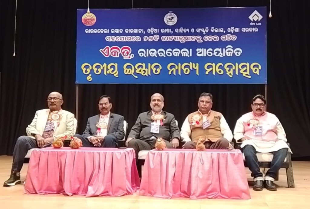 राउरकेला, 3//12:(कलिंग समाचार) (बिप्लव रंजन दाश) – राउरकेला इस्पात संयंत्र, ओडिया भाषा, साहित्य और संस्कृति विभाग तथा ओडिशा सरकार के सहयोग से 27 नाट्य संस्थानों से गठित ‘एकत्र, राउरकेला’ द्वारा तीसरा इस्पात नाट्य महोत्सव-2025 मंगलवार को उद्घाटित हो गया है।संस्था के अध्यक्ष कवि राजीव पाणि की अध्यक्षता में उद्घाटन सभा आयोजित की गई, जिसमें राउरकेला स्टील प्लांट (RSP) के प्रभारी निदेशक आलोक वर्मा ने मुख्य अतिथि के रूप में भाग लिया और उत्सव का शुभ उद्घाटन किया। बीपीयूटी के कुलपति प्रोफेसर अमीय कुमार रथ, एकत्र के सलाहकार कृपासिंधु नायक, और महासचिव विजय कुमार पात्र सम्मानित अतिथि के रूप में उपस्थित थे।संस्था के अध्यक्ष राजीव पाणि ने स्वागत भाषण देते हुए कहा कि नाटक हमारे समाज के लिए दर्पण के समान है। नाटक समाज में व्याप्त अंधविश्वास, अनैतिकता और अत्याचार के विरुद्ध निडरता से सच्चाई और वास्तविकता को उजागर कर सामाजिक चेतना जागृत करता है।इस अवसर पर, मुख्य अतिथि ने संस्था की भूरि-भूरि प्रशंसा की और कहा कि सब कुछ करने के साथ-साथ एक उच्च कोटि का नाटक करना, पुस्तक लिखना, या गीत गाना दूसरों का मनोरंजन करने के साथ-साथ समाज में एक पहचान बनाने में भी सहायक होता है। उन्होंने कहा कि एक नाटककार न केवल मनोरंजन करता है, बल्कि एक स्वस्थ समाज के निर्माण में भी सहायक होता है।बाद में, संस्था के उपाध्यक्ष ने धन्यवाद ज्ञापन किया, जबकि सभा कार्यक्रम का संचालन प्रवीर कुमार जेना ने किया। कल्याण दास, शांतिलता दास, संध्या पटनायक, अरुंधती स्वाईं आदि ने सभा के प्रबंधन में सहयोग किया। पहली शाम का नाटक: ‘भक्त र भगवान’