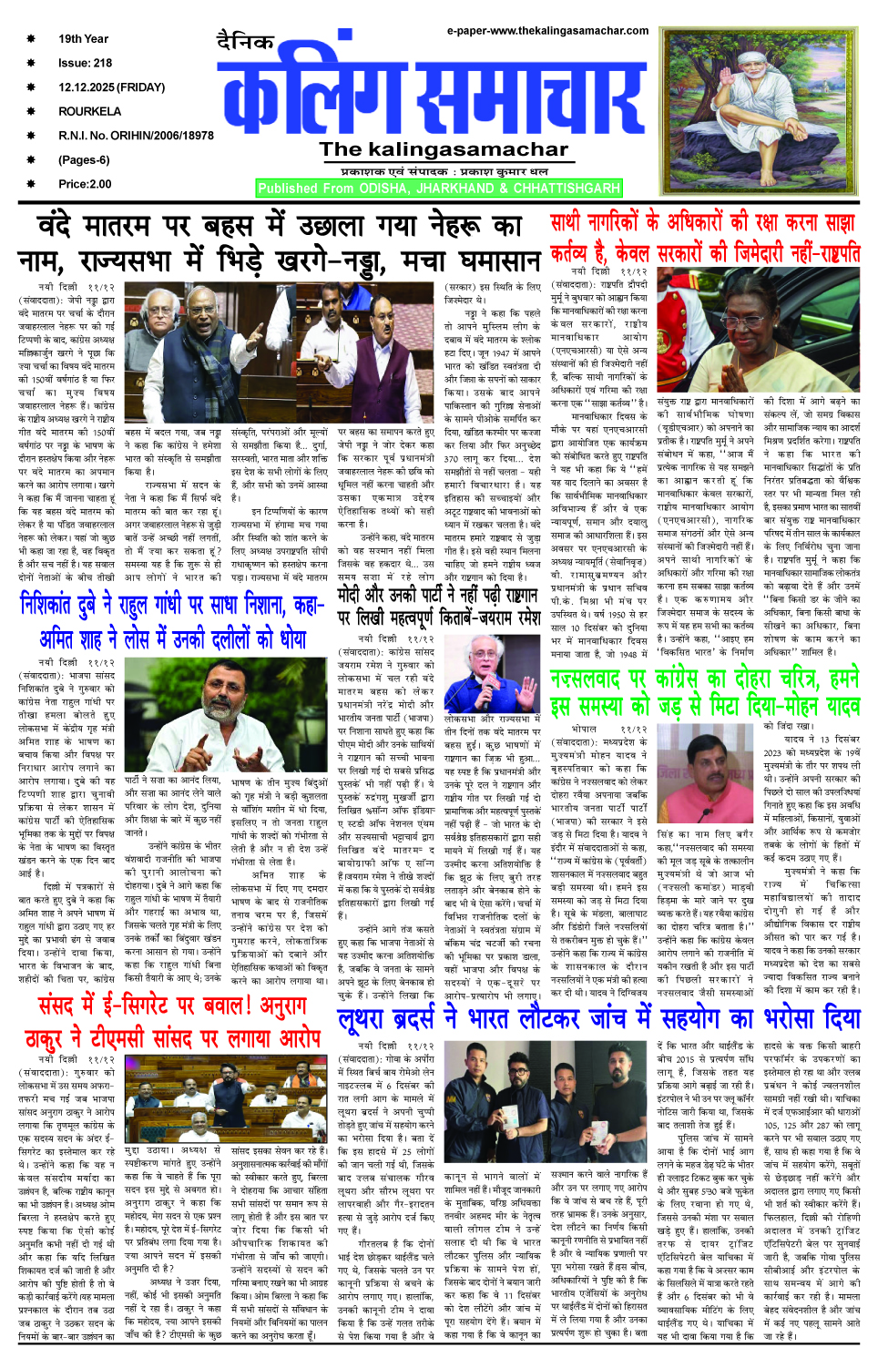 E-Paper 13-12-2025 The Kalinga Samachar December 13, 2025 Spread the love 1_compressedDownload About the Author The Kalinga Samachar Administrator Visit Website View All Posts Post Views: 46 Continue Reading Previous: सुरुचि बाज़ार के 33 वर्ष पूरे होने पर विशेष कार्यक्रमNext: सूचना एवं जनसंपर्क विभाग की उप निदेशक, उत्तरी अंचल (उप-निदेशिका), का सुंदरगढ़ दौरा Leave a Reply Cancel replyYour email address will not be published. Required fields are marked *Comment * Name * Email * Website Save my name, email, and website in this browser for the next time I comment. Related News E-Paper 6-2-2026 The Kalinga Samachar February 6, 2026 E-Paper 4-2-2026 The Kalinga Samachar February 5, 2026 E-Paper 28-1-2026 The Kalinga Samachar January 29, 2026