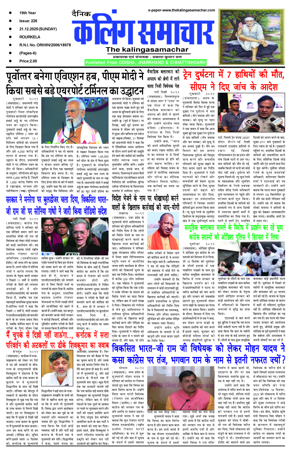 E-Paper 23-12-2025 The Kalinga Samachar December 23, 2025 Spread the love 1_compressedDownload About the Author The Kalinga Samachar Administrator Visit Website View All Posts Post Views: 22 Continue Reading Previous: 20-12-2025Next: उभरती प्रौद्योगिकी की नवीन प्रवृत्तियाँ: बीपीयूटी का तीन दिवसीय बहु-अंतर्राष्ट्रीय सम्मेलन संपन्न Leave a Reply Cancel replyYour email address will not be published. Required fields are marked *Comment * Name * Email * Website Save my name, email, and website in this browser for the next time I comment. Related News E-Paper 6-2-2026 The Kalinga Samachar February 6, 2026 E-Paper 4-2-2026 The Kalinga Samachar February 5, 2026 E-Paper 28-1-2026 The Kalinga Samachar January 29, 2026