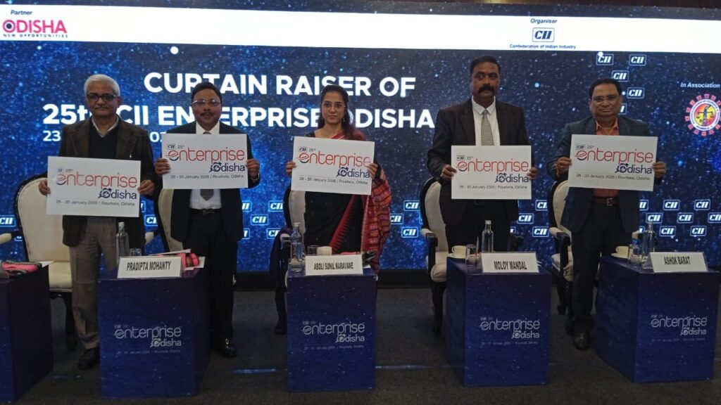 राउरकेला, 23/12:(कलिंग समाचार) भारतीय उद्योग परिसंघ (CII) और राउरकेला चैंबर ऑफ कॉमर्स एंड इंडस्ट्रीज (RCCI) के संयुक्त तत्वावधान में आज राउरकेला के मेफेयर विलेज में 25वें सीआईआई (CII) एंटरप्राइज ओडिशा के ‘कर्टन रेजर’ (पर्दा उठाना) कार्यक्रम का आयोजन किया गया।इस अवसर पर मुख्य अतिथि के रूप में उपस्थित ओडिशा उद्योग निदेशालय, MSME विभाग की निदेशक श्रीमती अबोली सुनील नरवणे ने कर्टन रेजर का लोगो और 25वें CII एंटरप्राइज ओडिशा 2026 का आधिकारिक वीडियो लॉन्च किया। उन्होंने ओडिशा के भारत के सबसे तेजी से बढ़ते और आशाजनक औद्योगिक गंतव्यों में से एक होने पर प्रकाश डाला। उन्होंने खनन, धातु, पेट्रोकेमिकल्स, कपड़ा, खाद्य प्रसंस्करण और MSME जैसे मजबूत औद्योगिक आधार के साथ-साथ नवीकरणीय ऊर्जा, ग्रीन हाइड्रोजन, उन्नत विनिर्माण, आईटी और लॉजिस्टिक्स जैसे उभरते क्षेत्रों के महत्व पर जोर दिया।श्रीमती नरवणे ने महिला उद्यमियों की भागीदारी बढ़ाने पर जोर देते हुए समावेशी विकास, नवाचार और रोजगार सृजन में उनकी महत्वपूर्ण भूमिका को रेखांकित किया। उन्होंने महिला नेतृत्व वाले उद्यमों के लिए एक सक्षम इकोसिस्टम बनाने हेतु मजबूत समर्थन प्रणाली, बेहतर वित्तीय उपलब्धता और केंद्रित क्षमता-निर्माण की अपील की। ओडिशा सरकार के साथ CII की साझेदारी की सराहना करते हुए उन्होंने घोषणा की कि 25वां CII एंटरप्राइज ओडिशा 28 से 30 जनवरी, 2026 तक राउरकेला में आयोजित किया जाएगा। यह आयोजन पश्चिमी ओडिशा की औद्योगिक शक्ति को प्रदर्शित करेगा, जिसमें प्रौद्योगिकी, स्थिरता, ऊर्जा परिवर्तन, पर्यटन और महिला सशक्तिकरण पर ध्यान केंद्रित किया जाएगा।25वें CII एंटरप्राइज ओडिशा के सम्मेलन अध्यक्ष डॉ. प्रदीप्त मोहंती ने कहा कि पिछले संस्करणों ने निवेशकों को ओडिशा की शक्ति से जोड़ने और झारसुगुड़ा जैसे क्षेत्रों में एकीकृत औद्योगिक इकोसिस्टम को मजबूत करने में महत्वपूर्ण भूमिका निभाई है। आगामी संस्करण रोजगार वृद्धि, स्वच्छ ऊर्जा और भविष्य के लिए तैयार बुनियादी ढांचे के केंद्र के रूप में ओडिशा के उदय को प्रदर्शित करेगा।कार्यक्रम में एनआईटी (NIT) राउरकेला के निदेशक प्रोफेसर उमामहेश्वर राव ने प्रगतिशील नीतियों और उद्योग-शिक्षा जगत के सहयोग के माध्यम से औद्योगिक इकोसिस्टम को मजबूत करने के सरकारी प्रयासों की चर्चा की। उन्होंने कहा कि NIT राउरकेला इस पहल की सफलता सुनिश्चित करने के लिए पूर्ण शैक्षणिक और अनुसंधान सहायता प्रदान करेगा।राउरकेला चैंबर ऑफ कॉमर्स एंड इंडस्ट्री (RCCI) के अध्यक्ष मलय मंडल ने ओडिशा की आर्थिक वृद्धि में राउरकेला के रणनीतिक महत्व पर प्रकाश डाला। उन्होंने शहर के मजबूत बुनियादी ढांचे और कुशल कार्यबल पर जोर देते हुए CII को पूर्ण सहयोग देने का श्