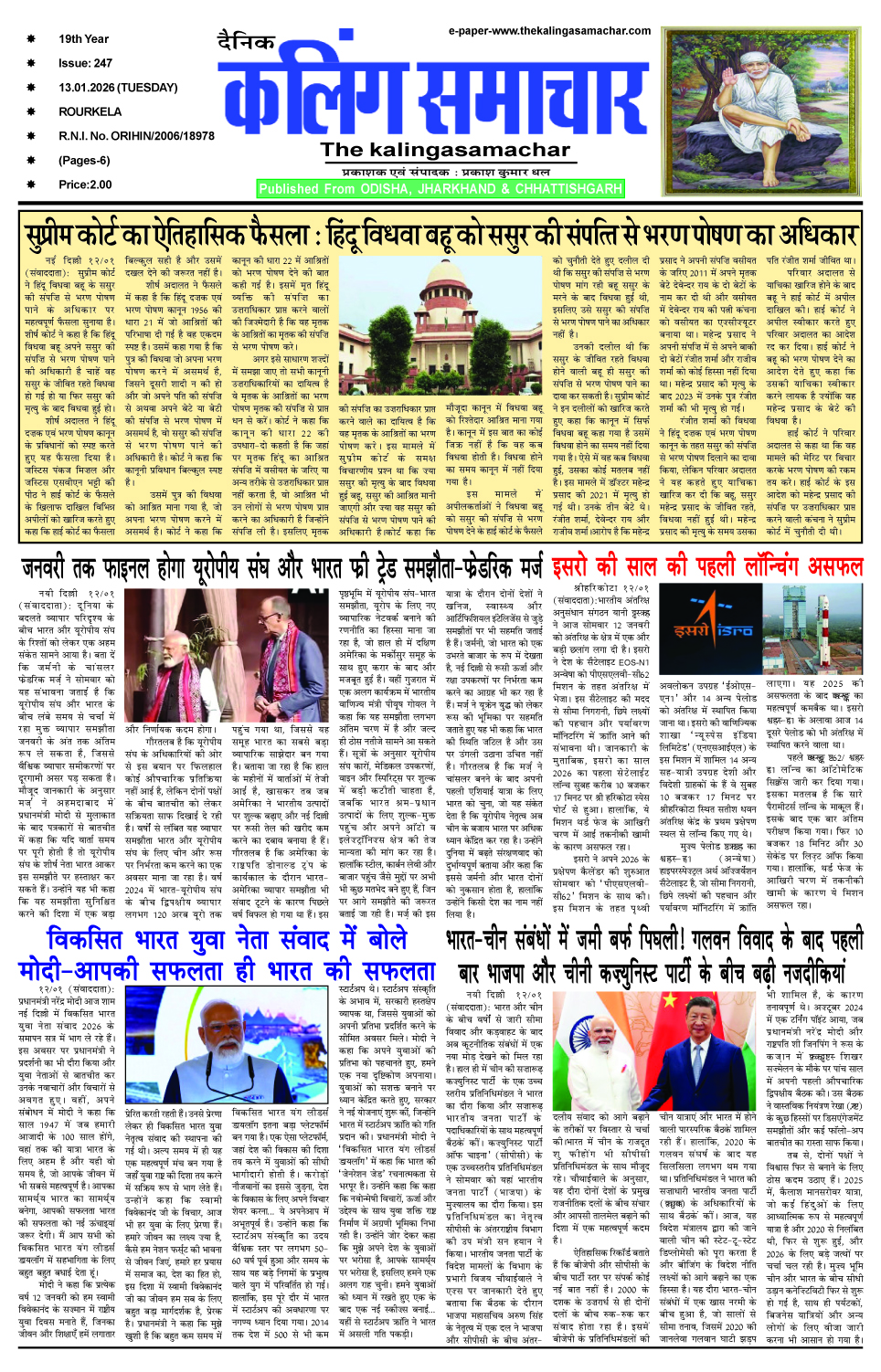E-Paper 13-1-2025 The Kalinga Samachar January 14, 2026 Spread the love 1_compressedDownload About the Author The Kalinga Samachar Administrator Visit Website View All Posts Post Views: 10 Continue Reading Previous: युवा व्यावसायिक संघ की ओर से मकर संक्रांति को लेकर गुलगुला घुघनी पकौड़ी वितरणNext: मकर संक्रांति को लेकर विभिन्न संगठन की ओर से खाद्य सामग्री वितरण Leave a Reply Cancel replyYour email address will not be published. Required fields are marked *Comment * Name * Email * Website Save my name, email, and website in this browser for the next time I comment. Related News E-Paper 6-2-2026 The Kalinga Samachar February 6, 2026 E-Paper 4-2-2026 The Kalinga Samachar February 5, 2026 E-Paper 28-1-2026 The Kalinga Samachar January 29, 2026