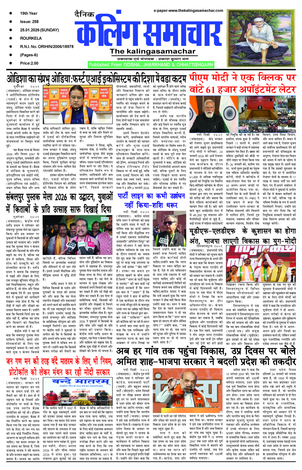 E-Paper 25-1-2025 The Kalinga Samachar January 25, 2026 Spread the love 1_compressedDownload About the Author The Kalinga Samachar Administrator Visit Website View All Posts Post Views: 5 Continue Reading Previous: Previous PostNext: श्री अखंडलमनी मंदिर का 50 वा अष्टप्रहरीनाम संकीर्तन Leave a Reply Cancel replyYour email address will not be published. Required fields are marked *Comment * Name * Email * Website Save my name, email, and website in this browser for the next time I comment. Related News E-Paper 6-2-2026 The Kalinga Samachar February 6, 2026 E-Paper 4-2-2026 The Kalinga Samachar February 5, 2026 E-Paper 28-1-2026 The Kalinga Samachar January 29, 2026