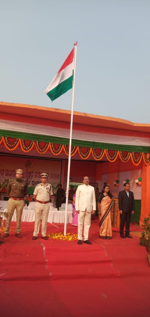 राउरकेला, 27//1,(कलिंग समाचार): जिला प्रशासन की ओर से उदितनगर मैदान में 77वां गणतंत्र दिवस बड़े धूमधाम से मनाया गया। इस अवसर पर आर डी सी सचिन रामचंद्र जाधव ने मुख्य अतिथि के रूप में शामिल होकर राष्ट्रीय ध्वज फहराया और संयुक्त परेड की सलामी ली।स्वतंत्रता सेनानियों को श्रद्धांजलिश्री जाधव ने भारतीय संविधान के निर्माता बाबा साहेब भीमराव अंबेडकर को याद किया और स्वतंत्रता संग्राम में शामिल महान सेनानियों के त्याग और बलिदान को याद करते हुए उन्हें भावभीनी श्रद्धांजलि अर्पित की।संबोधन के मुख्य अंश:समारोह को संबोधित करते हुए मुख्य अतिथि श्री जाधव ने कहा:राउरकेला की एक अलग पहचान है। यहाँ की सामाजिक संस्कृति और भाईचारे की परंपरा अद्वितीय है। राउरकेला नगर निगम के प्रयासों से शहर की स्वच्छता व्यवस्था मजबूत हुई है। शहर को साफ रखने के लिए लोगों को जागरूक और प्रोत्साहित करना सराहनीय है। उन्होंने सभी से राउरकेला को एक स्वच्छ और सुंदर शहर बनाने में सहयोग करने का आह्वान किया।स्पोर्ट्स हब: 2023 पुरुष हॉकी विश्व कप, हॉकी प्रो-लीग और हॉकी इंडिया लीग के सफल आयोजन के बाद राउरकेला एक ‘स्पोर्ट्स हब’ बन गया है। यहाँ के खिलाड़ियों ने राष्ट्रीय और अंतर्राष्ट्रीय स्तर पर देश का प्रतिनिधित्व कर सुंदरगढ़ जिले और राउरकेला का मान बढ़ाया है।भव्य परेड: रिजर्व पुलिस के समित सामल के नेतृत्व में आयोजित संयुक्त परेड में कुल 52 टुकड़ियों ने हिस्सा लिया।पुरस्कार वितरण: परेड के बाद रंगारंग सांस्कृतिक कार्यक्रम आयोजित किए गए। खेल के क्षेत्र में उत्कृष्ट प्रदर्शन करने वाली प्रतिभाओं को सम्मानित किया गया। साथ ही, स्कूल और कॉलेज के छात्रों के लिए आयोजित विभिन्न प्रतियोगिताओं के विजेताओं को पुरस्कार प्रदान किए गए।उपस्थित विशिष्ट अतिथि:समारोह में बृजेश कुमार राय डीआईजी, पश्चिमी रेंज सुश्री दीना दस्तगीर अतिरिक्त जिलाधिकारी एवं नगर निगम आयुक्त नितेश वाधवानी आरक्षी अधीक्षक विजय कुमार नायक उप-जिलापाल, पानपोष सीमा फातिमा एक्का जिला सूचना एवं जनसंपर्क अधिकारी इस विशेष अवसर पर राउरकेला मुख्य जेल के कैदियों और राउरकेला सरकारी अस्पताल के मरीजों के बीच फल और मिठाइयां बांटी गईं। कार्यक्रम का सफल संचालन जिला सूचना एवं जनसंपर्क अधिकारी सीमा फातिमा एक्का और श्रीकांत षड़ंगी ने किया। इस दौरान विभिन्न विभागों के अधिकारी और बड़ी संख्या में आम जनता मौजूद थे