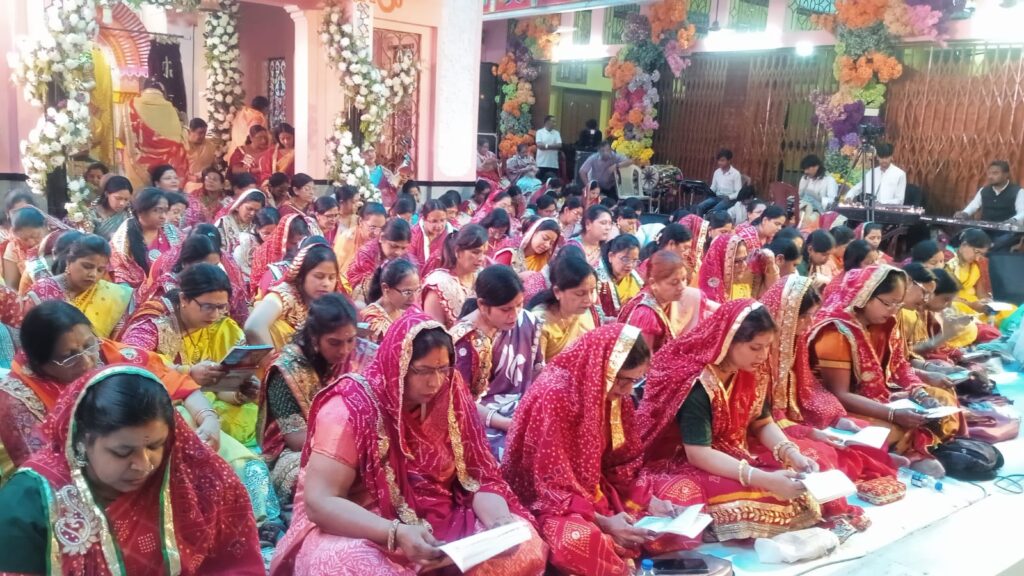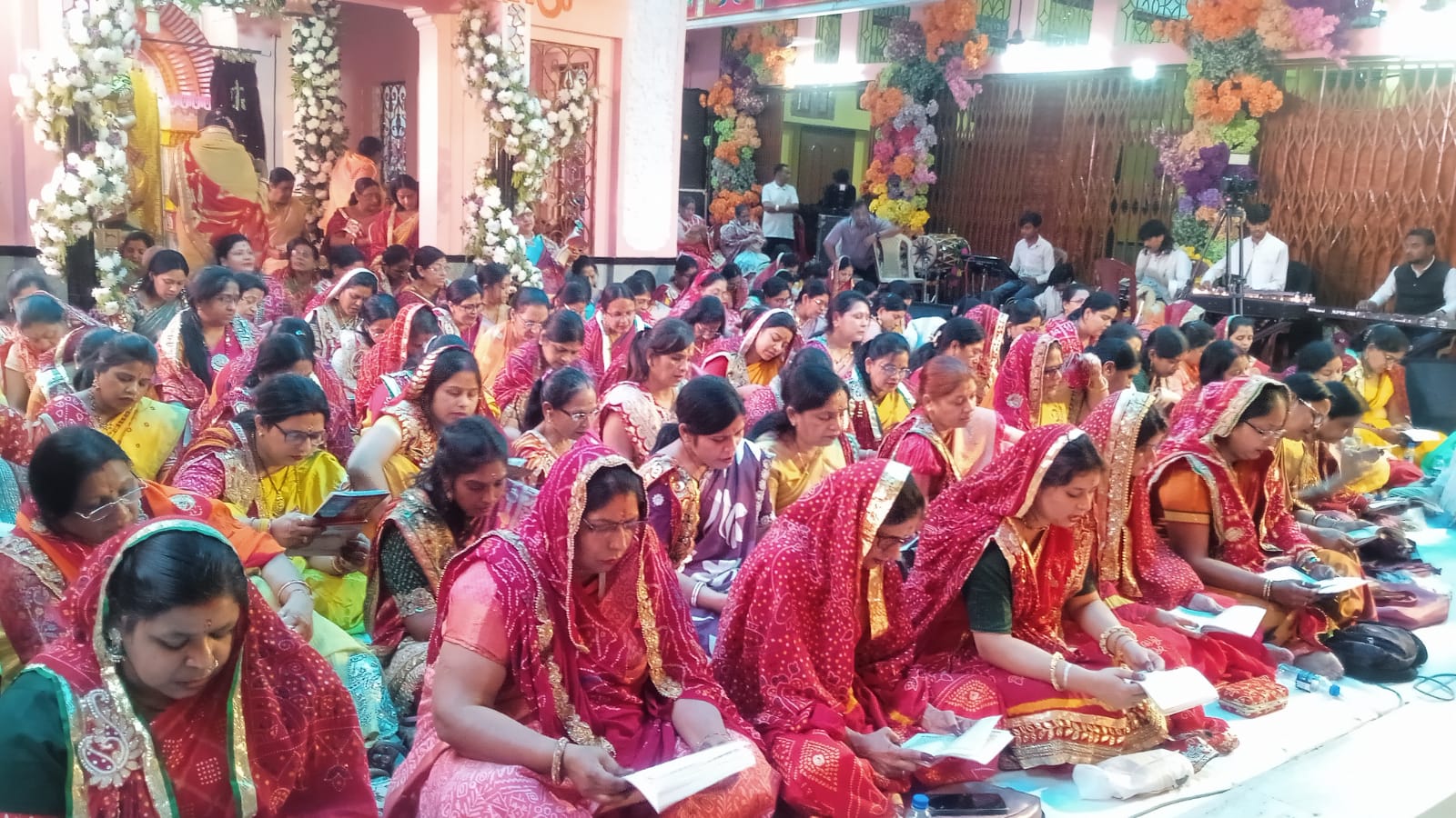राउरकेला:26//2,(कलिंग समाचार) के श्याम मंदिर परिसर में तीन दिवसीय 44 श्याम फागुन महोत्सव को लेकर गुरुवार के दिन मंगल पाठ का भव्य आयोजन किया गया है जिसमें काफी संख्या में सुहागन महिलाएं लाल साड़ी लाल चुनरी ओढ़ कर श्याम मंगल पाठ में शामिल हुई है वही झारखंड चक्रधरपुर के अमित शीतल चांडक शर्मा के द्वारा मंगल पाठ पढ़ा जा रहा है मंगल पाठ के दौरान बीच-बीच में भजन भी भक्तों को सुनाया जा रहा है जिसे लेकर पूरा मंदिर परिसर भक्ति मय हो गया सुबह 10:से यह मंगल पाठ आरंभ हुआ है मंगल पाठ कार्यक्रम को लेकर मंदिर को छत्तीसगढ़ रायगढ़ से आए कारीगरों के द्वारा फूलों से सजाया गया है वही श्याम बाबा की दिव्य ज्योत एवं 56 भोग लगाया गया है मंदिर के पुजारी के द्वारा विधि विधान से पूजा अर्चना की गई है मंगल पाठ में बैठी महिलाओं के लिए फलिहार की व्यवस्था मंदिर की ओर से की गई है वही 27 तारीख को श्याम मंदिर से मध्यान 1: बजे समय निशान यात्रा निकाली जाएगी यह निशान यात्रा श्याम मंदिर से पावर हाउस रोड रिंग रोड होकर पंच मंदिर में निशान की पूजा अर्चना के बाद निकाल कर बीसरा चौक होते हुए मुख्य मार्ग देकर श्याम मंदिर ढोल नगाड़ा बाजे के साथ आएगी गुरुवार के दिन मंगल पाठ को लेकर श्याम मंदिर परिसर में श्याम भक्तों की काफी भीड़ देखने को मिली